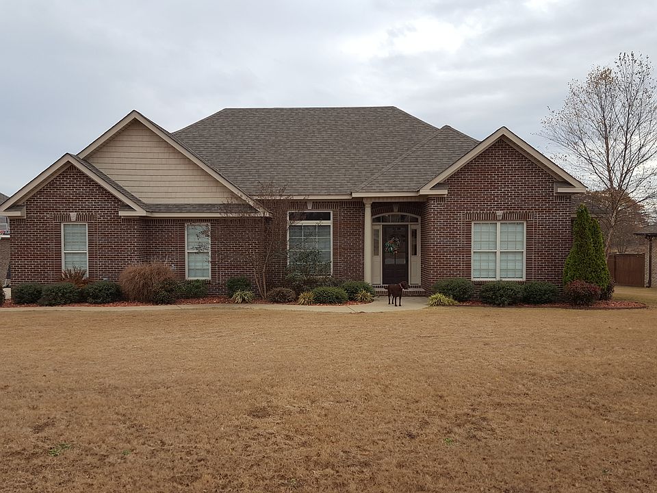 Call (256) 394-1792 to schedule an appointment for viewing. Great neighborhood where the kids can play and not worry! Out in the country, but with a neighborhood feel. Enjoy this beautiful brick home situated on just over half an acre. Built in 2010, this split bedroom home includes a great room that has a fireplace with gas logs, hardwood flooring, and high ceiling. The formal dining also has high ceilings, and hardwood flooring. The eat-in kitchen has beautiful custom cabinets, stainless appliances, porcelain tile flooring, and a door that leads to the covered patio and multi-level wood deck. The large master has trey ceilings, a big master bathroom that includes a whirlpool tub, double sinks, separate shower, and large walk-in closet. On the other side of the house, you will find two additional bedrooms with good closet space along with a nice size full bath.