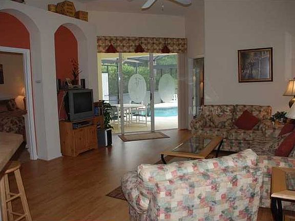 Single Family Home - DAVENPORT, FL Home has large south facing pool with extra pool deck and lanai area, no rear neighbors, wooded area behind pool, home has upgraded furnishings, flooring, garage has been closed in to make a huge air conditioned or heated family room with currently full of game room items, tv, sofa, wooded flooring. home has short term rentals in place for income right away , goes with sell of home if new buyers want to keep rentals in place now. Must see all the upgrades to appreciate them, pictures wont do this home justice.