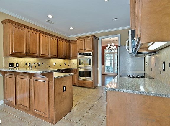 Beautiful Custom Built 5 bedroom 3 bath full Daylight basement brick home-LIKE NEW Condition! Inground pool salt water with new liner- VACATION AT HOME! Mainlevel- specialty ceilings throughout-Gourmet Kitchen w/stainless, Silestone solid surface Countertops, maple cabinets, ceramic flooring and backsplash. Sand and finished Oak floors in dining room and foyer, elegant crown molding throughout. Large masterbedroom and bath with 2 large walk in closets. Large ceramic tile shower , whirlpool tub and double vanities. Large GR w/ fireplace on main level and 2 additional bedrooms and bath. Huge basement -9' ceilings- Freshly painted, 2 huge bedrooms and bath. Large playroom or bonus room plus huge media room. Large unfinished area already heated and cooled. Large oversized double garage!