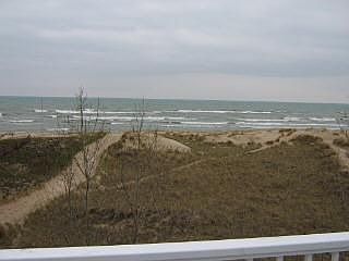 LAKE MICHIGAN AWAITS YOU! 3 bedroom, newer construction town home ON THE BEACH. No grass to cut, this is beach grass! The town home screams LUXURY! Lake Michigan 3 level town home with balcony's or patio on each level and party deck on top level. Enter to Living room with fireplace and custom paint with white trim throughout, open concept to gourmet kitchen with granite counter tops and maple cabinets also granite breakfast bar, convenient 1/2 bath on this level. Next level boasts 2 bedrooms with balcony to enjoy the lake breeze and spectacular view. Also a full bath on this level. Penthouse level is for the large master suite. French doors open to balcony overlooking the most spectacular view of the water and beach. Private bath features whirlpool tub and separate shower. The top deck is great for entertaining, sunbathing, watching the sunrise or sunset or just plain relaxing and listening to the waves of beautiful Lake Michigan!Some pictures are of adjoining units.
