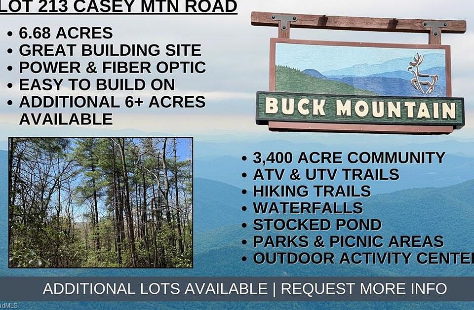 *3-BEDROOM SEPTIC PERMIT RECENTLY ISSUED (Expires 6/5/2030)* 6.68 acres w/gently sloping terrain. From road, follow pink flags to proposed building site (staked). Great view potential w/some tree trimming! Electric to lot. FIBER OPTIC available. Looking for a quiet place to build a weekend mtn getaway? Conveniently located in 3,400 acre BUCK MTN, the ONLY GATED ATV COMMUNITY in Wilkes County. Long & short-term rentals allowed. PRIME LOCATION! Only 1 hr from Winston & 1 hr 40 min from Charlotte. Centrally located 35 min from Boone, West Jefferson & Wilkesboro. Near High Country activities, BLUE RIDGE PKWY, ASU, shopping, dining, golf, wineries, breweries, mtn biking & skiing. BUCK MTN HAS HARD TO FIND AMENITIES: ATV & Hiking Trails, Parks, Fishing Pond, Water Falls, Pavilions, Community Center, Helipad, Outdoor Activity Center w/amphitheater for live music, community gatherings & more! 1,400 SF min to build. NO TINY HOMES. NO MOBILE HOMES. NO CAMPING. NO SELLER FINANCING.
