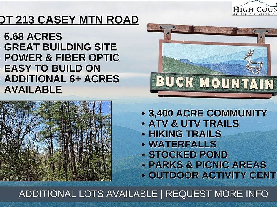 *3-BEDROOM SEPTIC PERMIT RECENTLY ISSUED (Expires 6/5/2030)* 6.68 acres with gently sloping terrain. Proposed building site has been staked. From the road, just follow the pink flags to the building site. Great view potential with some tree trimming! Seller has already applied for a three bedroom septic permit and it should be issued in the next few weeks. Electric is run to the lot. FIBER OPTIC is available. Looking for a quiet place in the mountains to build a weekend getaway and a place to relax? Conveniently located in the 3,400 acre Buck Mountain community...ONLY GATED ATV COMMUNITY in Wilkes County. Long-term and short-term rentals are allowed. Buck Mountain is a PRIME LOCATION! Arrive at the gate from Winston in only 1 hour and from Charlotte in 1 hour 40 min. Just minutes from High Country activities. Centrally located 35 minutes from Boone, West Jefferson, and Wilkesboro. Close to BLUE RIDGE PKWY, ASU, shopping, dining, golf, wineries, breweries, mountain biking and skiing. BUCK MOUNTAIN HAS HARD TO FIND AMENITIES like ATV Trails, Hiking Trails, Parks, Fishing Pond, Water Falls, Pavilions, Community Center, Helipad, Outdoor Activity Center with amphitheater for live music, community gatherings and so much more! Make lasting memories while spending the day hiking or riding ATVs on the miles of trails. 1,400 SF minimum building requirement. NO TINY HOMES. NO MOBILE HOMES. NO CAMPING. NO SELLER FINANCING. Well and septic needed. 3-bedroom septic permit is current.