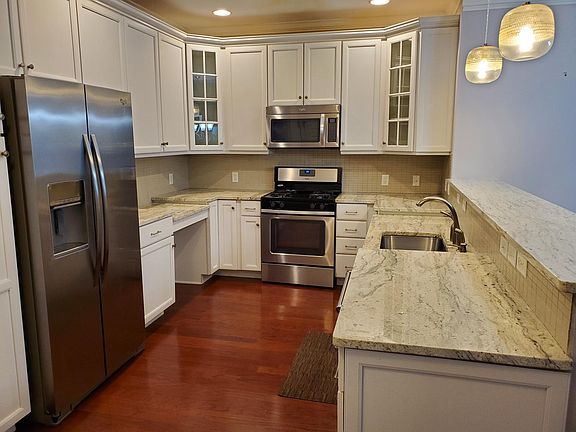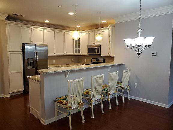 Welcome to 213 Center Meadow Lane & true resort style living at Rivington! Enjoy this Branford model and its wide-open floor plan & high ceilings! White & bright kitchen with tons of granite countertop space, cabinets galore, and SS appliances. Easily entertain with island breakfast bar with room for 3 + stools, a dedicated dining area, & large living room with French door to a large, covered porch with distant mountain views. The primary bedroom is huge and can easily accommodate a king bed with matching nightstands, 2 dressers+! The walk in closet and additional double closet provide ample room for clothes, shoes + more! The ensuite bath comes equipped with double sink, shower with seamless glass enclosure with bench & dedicated linen closet. The 2nd bedroom is 12 X 11 and is just a few feet away from its own, full hall bath with vanity and shower/tub combo. The washer/dryer is located inside the condo too. Unit also includes a 10 X 8 storage unit in lower level of building for super convenience. Building 200 is just a stone's throw from all that Rivington has to offer. Amenities include: Club house, fully equipped gym, his/her locker room with showers & saunas, yoga studio, theatre, craft room, grand hall, billiard room with bar, full-service kitchen, 1 indoor and 2 outdoor swimming pools, sundeck, Covered outdoor lounge with 3 flat screen tv's, 2 fireplaces, gas grill station, & ping pong tables. Tennis courts, bocci ball and basketball court also available. Enjoyment all year round! Conveniently located to shopping, restaurants and major highways. Rent includes 1 assigned parking and all amenities. Candidates must generate $120k in verifiable household income and 700+ credit score. No exceptions. Available September 15th! Tenant pays electric, natural gas, cable, phone, internet. All amenities are included in rent. Common area maintenance, lawn maintenance, garbage/recycling, snow removal included in rent also. Includes one assigned parking spot and more than ample visitor parking. Unit also includes a 10 X 8 storage unit in lower level of building. Tenant pays $250 non-refundable move in fee to HOA. 1st month's rent + security deposit + 1 month's realtor fee due at lease signing.