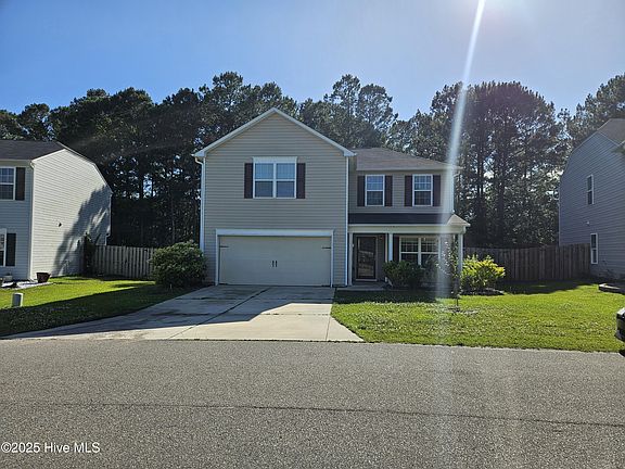 Welcome to this charming 4-bedroom, 2.5-bathroom home located in the desirable Holly Ridge, NC area. This lovely house features a spacious patio perfect for outdoor entertaining, a fenced yard for added privacy, a covered porch for relaxing evenings, and central HVAC for year-round comfort. All bedrooms are located on the second floor along with the laundry room and spare hall bath. With plenty of space for your family and guests, this home is ideal for those seeking a cozy and inviting living space. Nearby restaurants, stores, and beaches!! Don't miss out on the opportunity to make this house your new home!