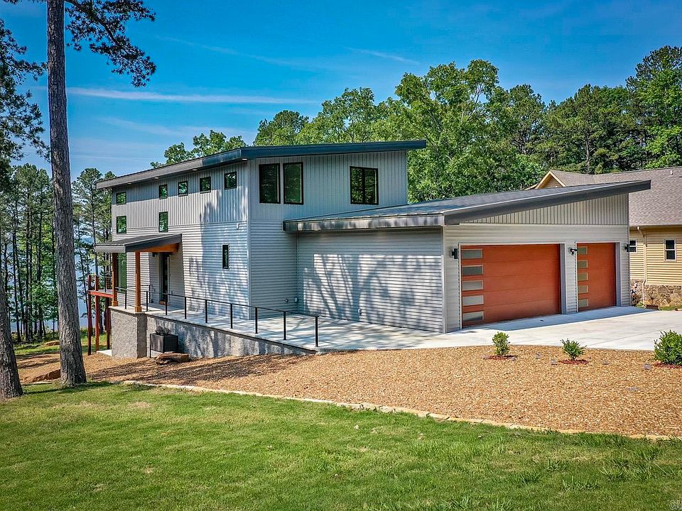 Situated on the shores Greers Ferry Lake, this home showcases the perfect fusion of contemporary design & natural beauty. A boat slip can be purchased separately for $35,000. You'll be captivated by the abundance of natural light that fills the rooms. Every detail has been meticulously crafted to create a luxurious living environment that exudes modern elegance. Designed with outdoor living in mind, this home boasts three expansive decks that offer breathtaking views of the lake. Enhancing the outdoor experience, an exquisite outdoor kitchen awaits, complete with a grill, sink & ample counter space. Enjoy the double fire place to relax in the evenings. Additionally, the outdoor shower allows you to rinse off after a refreshing swim in the lake. The kitchen is equipped with quartz countertops, upgraded appliances, pantry & butlers/coffee bar. The stunning master bedroom bathroom is a luxurious retreat which boasts a deck door that opens up to breathtaking views of the lake, allowing you to savor the beauty of nature. Indulge in pure relaxation in the large soaker tub. The custom closet is a true masterpiece, featuring hydraulic clothes rods. This home has been virtually staged.