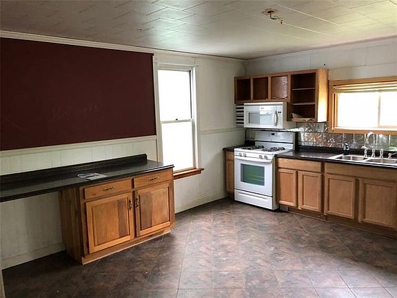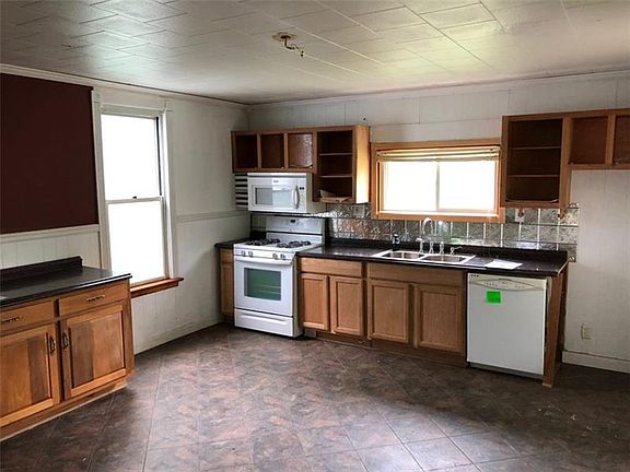 Move-in ready 4 bedroom, 1 bathroom home with front and back porch and detached 1 car garage. Large eat-in kitchen with lots of counter space. Newer kitchen with premium cherry doors, newer flooring, newer roof, windows, siding and deep bedroom closets. Higher efficiency furnace and newer water tank. Flat back yard with privacy fence.