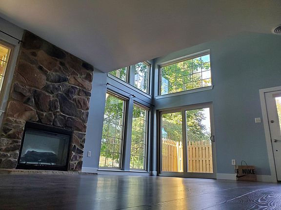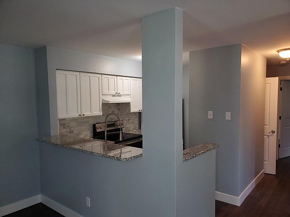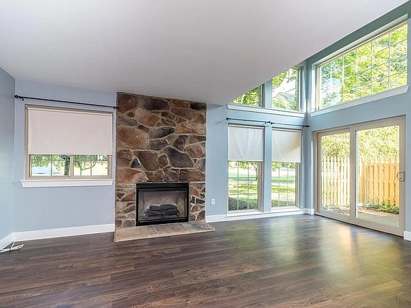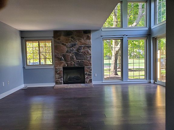 Completely renovated first floor unit in Lindenfield. The location for this unit is great within the community with open space right outside the door. Open floor plan with a wall of windows in the living room with sliders to the private patio. The living room also features a beautiful floor to ceiling stone fireplace with electric insert. It opens to the dining area and kitchen so it's a great place to entertain. The kitchen features white cabinets, granite countertops, subway tile backsplash and all appliances. It also has an enlarged opening to the dining room with an overhang for stools or serving. There are two nice bedrooms with the main having a walk-in closet and access to the bathroom. The bathroom features a new vanity and tile flooring plus it houses the laundry. Great location and close to parks, restaurants & train. Owner pays association dues which include trash, lawn, and snow removal. Tenant pays water sewer and electric.