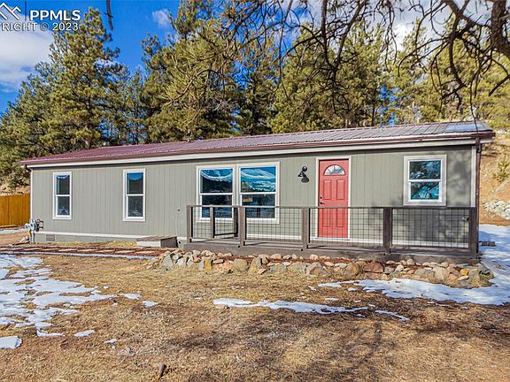 Welcome to your dream home in the heart of a charming, small-town community! This open-concept ranch-style home has been fully remodeled inside and out. South-facing with abundant natural light, this home is like brand new! New metal roof, gutters, privacy fence, and fresh paint on the exterior. New windows, flooring, paint, and light fixtures throughout the interior. The updated kitchen boasts sleek, stainless appliances, new plumbing fixtures, and new countertops, making cooking a true delight. Dining Room and Living Room have large picture windows to frame the scenery outside. Retreat to the spacious Master Bedroom, complete with walk-in closet and adjoining full Bath. 2 spacious secondary bedrooms and shared full Bath add a touch of luxury for everyone. Plenty of parking and space for an RV, or to add a Garage. There is no HOA and utilities are provided by Florissant Water & Sanitation. With a private backyard and proximity to local amenities, this home offers the tranquility of rural living without sacrificing modern conveniences. Let your idyllic small-town lifestyle begin here!