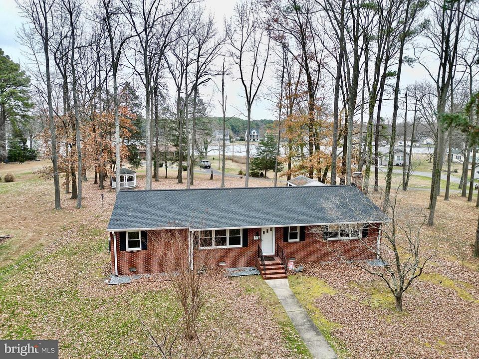 Welcome to 213 Clevenger Road, a well-maintained brick rancher located in a quiet waterfront community in Grasonville, Maryland. This 3-bedroom, 1 full bath, 1 half bath home offers comfortable one-level living on a spacious, wooded lot with a peaceful and private setting. Inside, you’ll find hardwood floors, a bright and inviting living room, and a cozy brick fireplace that anchors the main living space. The open layout flows into the dining area and kitchen, making it ideal for both everyday living and entertaining. The kitchen features ample cabinet space and includes a refrigerator (11/25) and stove (11/24). Recent improvements provide peace of mind, including a 20-year GAF Timberline Elite roof installed 10/24 with matching vents, new gutters and downspouts with underground pop-up drainage (7/25), a hot water heater replaced in 1/22, new aluminum attic stairs (2020), new toilets (8/24), and new exterior lighting (1/23). The attic was sealed and reinsulated in 5/25, and the crawlspace was professionally encapsulated with a dehumidifier added in 5/24. Outdoor living is a highlight with a rear deck overlooking the expansive backyard surrounded by mature trees. The property also includes a storage shed, recent stone and block improvements (6/24), and a fire-pit area perfect for relaxing evenings. A riding lawn mower is included, making upkeep easy. Conveniently located just minutes from marinas, waterfront dining, and Route 50 for an easy commute, this home offers a rare blend of thoughtful updates, privacy, and Eastern Shore charm.