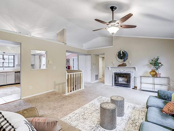 - Living Rm Feat: Wall-to-Wall Carpet, Walkout, Window Treatments, Fireplace