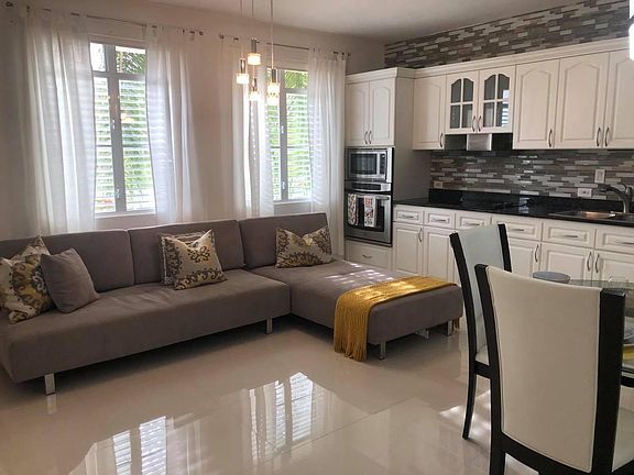 A recently remodeled spacious villa within a secure gated golf resort. The modern apartment has an area of 790 square feet. It has a terrace patio that overlooks the Golf Course, the mountains and the Caribbean Sea. A kitchen with new appliances, with everything you need to cook. Master bedroom has a king sized bed, it's own bathroom, walk-in closet, air conditioning and TV. One parking space. Free WiFi