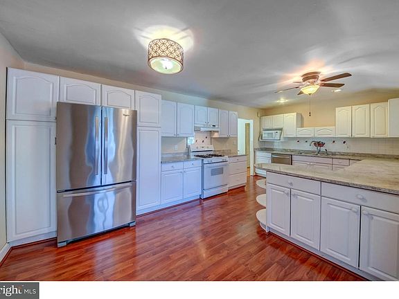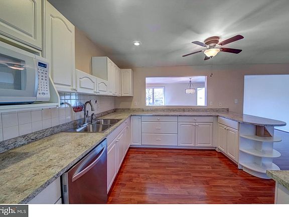 Welcome to Woodstream, a highly desirable Evesham Twp development very conveniently located to any commuting and shopping need. Home was originally built by Chiusano as a Valley Forge bi-level model. Subsequent addition of master bedroom suite and second car garage have increased the living space dramatically. Homeowner listened to the feedback from prior listing and made numerous upgrades. Huge kitchen updated with an abundance of counter space and soft close cabinets, is open to a large dining room which could be used as a possible second family room. Carpet was removed to expose hardwood throughout the upper level. Lower level features a massive family room accented by a woodburning stove that will heat the entire house. Walk-in closets. Backyard has a multi tiered deck with multiple access doorways from the house. Note there is a large backyard shed with a working hot tub to escape to for peace and quiet. Homeowner is offering a 1 yr home warranty. Virtual tour can be visited at 213ConestogaDr.go2frr.