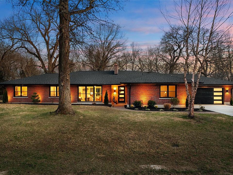 All brick Mid Century Modern Dream home located in the desirable Country Club Place. This 4000 sqft 5 bed 4 bath home has just gone through a complete makeover keeping its original integrity while providing the essential updates you would expect in a brand new home. The kitchen has been vaulted & stripped down to the bones with all new wiring, plumbing, insulation, cabinets, quarts counters, lighting,flooring etc. Brand new black windows throughout, new roof, beautiful refinished white oak flooring, wood burning fireplaces in the living room & walkout basement, covered upper & lower patios with tongue & groove ceilings, quarts window sills, new front door, new garage door, new concrete driveway and garage floor, outdoor lighting and landscaping.