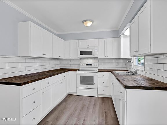 Welcome to this remodeled southern charmer. Situated at the end of the road with a large setback on a half-acre lot. As you enter, you will immediately notice beautiful LVP floors and that the entire home was freshly painted. The open concept connects the living room with a spacious kitchen. The kitchen offers butcher block countertops, ample storage space in beautiful white cabinets, new appliances, subway backsplash and a breakfast nook. The private Master Suite offers a walk-in closet and a bathroom with a shower. A second Master Suite offers a bathroom with a custom tiled shower. A spare bedroom has another bathroom with a tub located across the hallway. The laundry room closet is ready for your washer and dryer. All bedrooms have a brand-new carpet. New roof installed in 2020.