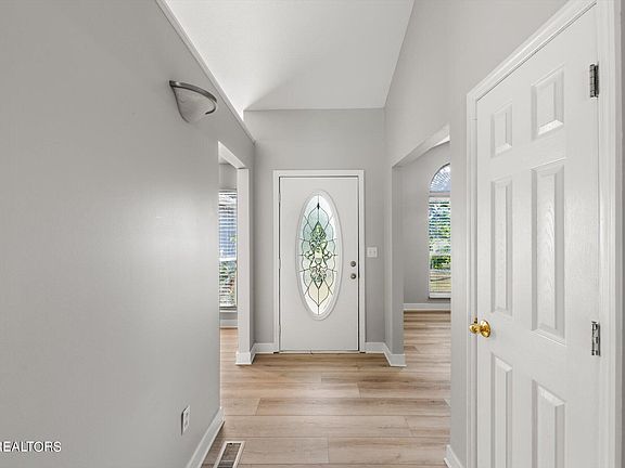Step inside to find a spacious living room featuring vaulted ceilings, a cozy fireplace, and a sliding glass door that floods the space with natural light. The open-concept kitchen is a chef's delight, offering ample cabinetry and a perfect flow for entertaining. Adjacent to the kitchen, the formal dining area is illuminated by a large window, creating an inviting atmosphere for gatherings.