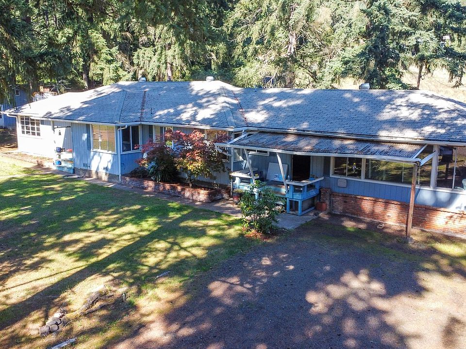 Wow, this property has so much potential! It's waiting for the right buyer to make it shine again. Two country homes sitting on almost 9 private acres! Main residence is 2215 sqft with 3 bedrooms, 2 full bathrooms, with an open and spacious kitchen along with a huge primary bedroom and bonus room(could be 4th bedroom The second house is an 848 sq/ft cottage with 1 bedroom and 1 bath. In salvageable condition, it could be renovated or replaced with a larger home. Surrounded by huge fir trees and in-ground swimming pool, the property feels like your own private summer camp or family escape. With large storage shed, covered carports and large workshop this property has plenty of storage! Both homes and outbuildings all have varying levels of deferred maintenance or needed repairs. RR zoning may allow for future replacement or additional dwellings to be constructed. Buyer to verify all zoning/building requirements. Call for your private tour today!