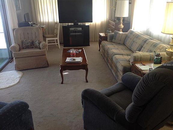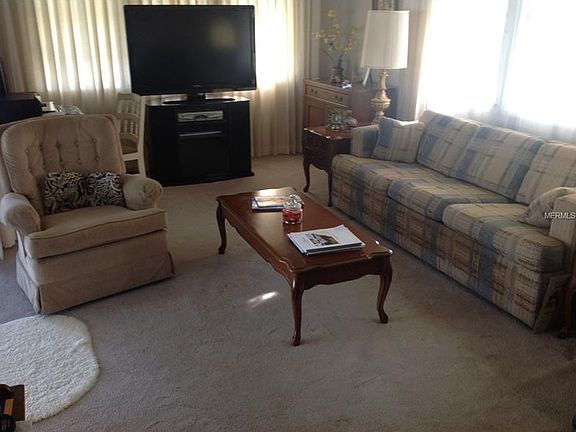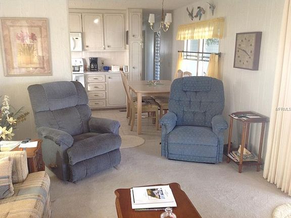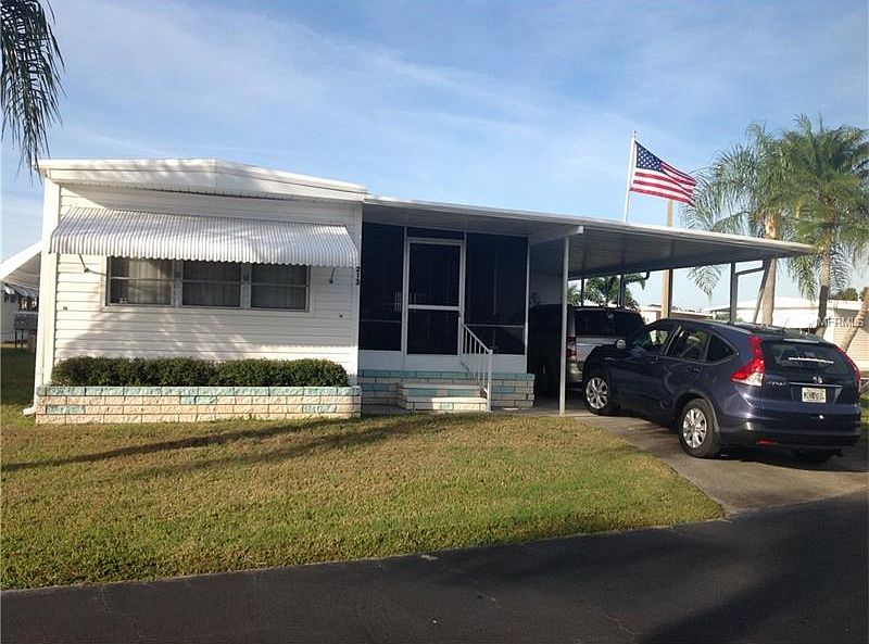 Quiet street, over sized corner lot, fully furnished two bedroom, two bath "L" shaped unit. Move in condition, only lived in 3 months out of the year. Marina plywood under carpet and tile. Newer roof over with installation, vinyl siding, large screened in lanai with ceiling installation. Large master bedroom. Utility shed with washer and dryer. Community with lots of activities, heated swimming pool, shuffle board, on site manager and club house. Low maintenance fee of $420/quarter includes: water, sewer, trash, lawn cutting, club house, manger, heated pool and shuffle board. 55+ Active community. NO Lot Rent. Residence Owned Community. Brand new air conditioning unit and duct work on 1/11/2017. Amazing amount of space in unit plus the screen lanai where you will probably spend most of your time. A must see - you will be surprised!!!