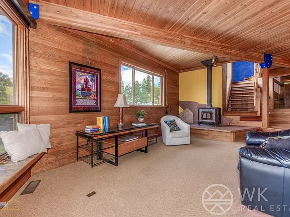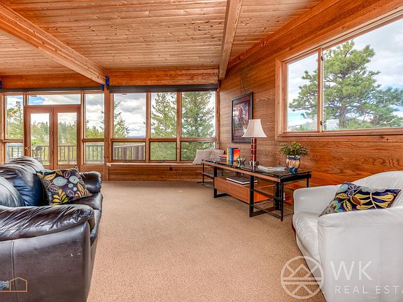 Lush wooded retreat in Boulder Heights. Picturesque VIEWS of snow-capped back range, Continental Divide, & city lights. Short walk to 280 acre camp to hike and bike. 10 min on County maintained roads to restaurants & shops. 2 fireplaces, walls of windows, updated kitchen. Features loft, hardwoods, vaulted ceilings, 3 decks, trombe wall, laundry room, workshop & storage. Master has vaulted ceilings, sunroom, luxury master bath, radiant heated floors. Decks & loft great to entertain & relax.