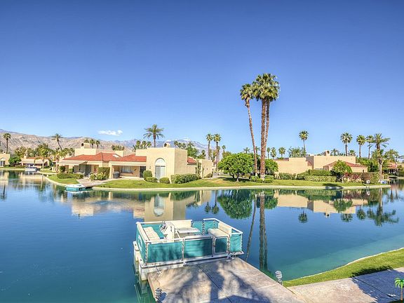 RED ALERT...SELLER WILL PAY FOR ONE YEAR OF HOA OR FURNITURE TO BE INCLUDED!!! Beautiful San Jacinto Mountain Views. Expansive Patio, one could build a Spool or Spa and Soak while enjoying the magnificent tranquility of the Lake!This community is all inclusive on the amenities. Extensive Fitness Center, Basket Ball Court, Racquet Club courts, 19 acres of Lake with 10 pools and spas. Club House with many social activities during the season..Great Bones, Lake View from Kitchen and Master Bedroom. At this price and location, one can afford to do the upgrades... Furniture and golf cart negotiable. Boat included.....New AC and Heater plus Water Heater!! OWNER MIGHT CARRY....20% down minimum