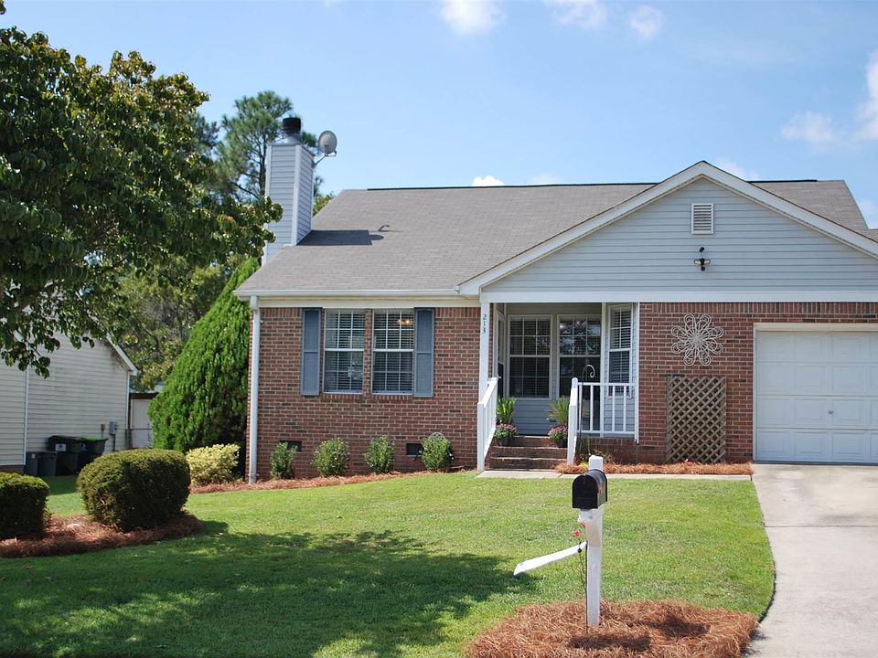 Welcome to 213 Dove Nest Court! This is a beautiful updated home ready for new owners. When you enter, you will notice the open floor plan with updated flooring, high ceilings, wood burning fireplace, and dining room. The kitchen boasts with openness, smooth top range, built-in microwave and a walk-in pantry to fit all of your storage needs. Down the hall are two bedrooms with a spacious bathroom. The master suite features a walk-in closet, and en-suite bathroom! You will love the large porch overlooking a completely fenced back yard. This home comes with a storage shed that is perfect for storing your decorations or lawn equipment in an easily accessible place. Attached to the storage area is a fantastic covered patio a great place to entertain, or to unwind after a long day. All of this and NO HOA!! This home is situated in a great location with easy access to groceries and local restaurants. Come see this home today before it is gone!