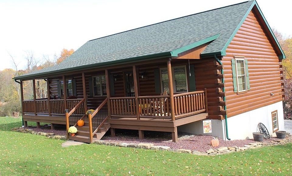 Like New Log Cabin feel. Enjoy the open floor plan in this nearly new home situated on 1.39 acres more or less. Kitchen appliances included, black stainless steel. Large covered front porch, big view rear deck. Detached 2 car heat garage. Approx. $100 per month gas royalty from neighborhood well. Beautiful basement family room with 3/4 bath, daylight walkout basement. Including finished basement 1856 sf+/- finished space. Easy commute to Pittsburgh. Knoch School District, Penn Township.