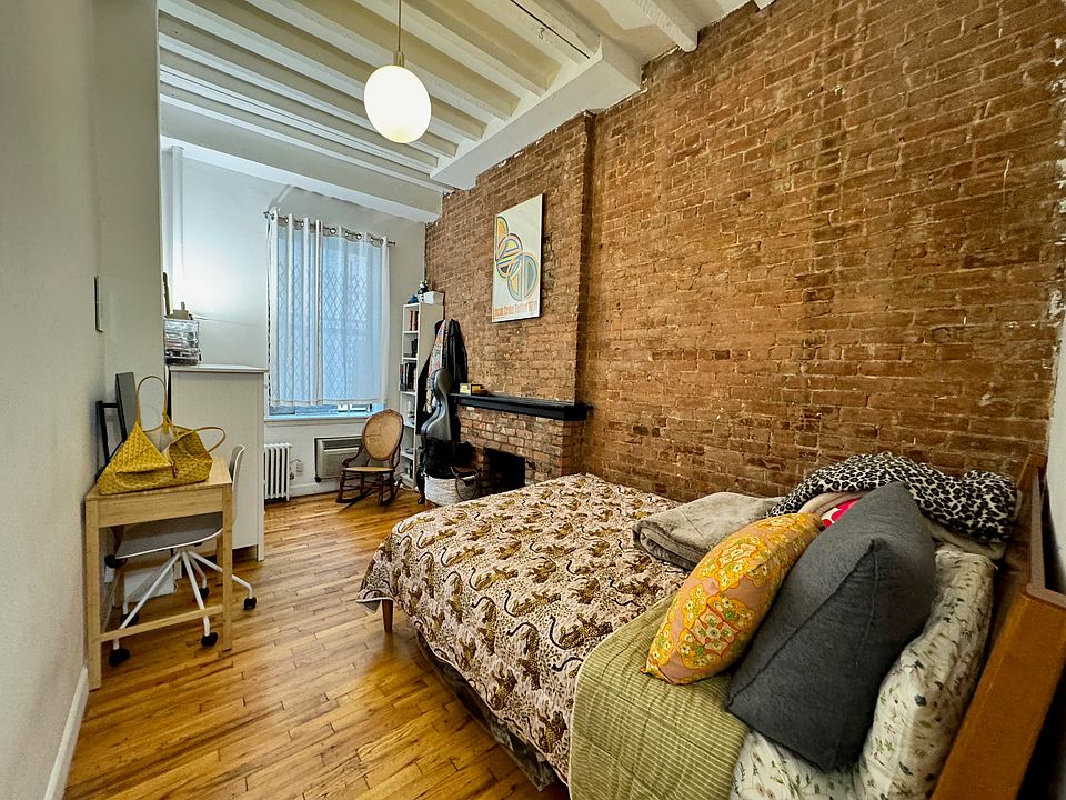 EXACT PIX! RARE AVAILABILITY! GREAT PRICE for this PRIME GRAMERCY studio! THIS IS A REAL APARTMENT! JUST ONE FLIGHT UP. 12 FOOT HIGH EXPOSED BEAMED CEILINGS! Will fit QUEEN BED and a sofa. Big deep closet. Separate modern windowed kitchen with ceramic floors and lots of cabinets. Full tiled bath. IN WALL AIR CONDITIONER ALREADY INSTALLED. Exposed brick wall with faux fireplace. Heat & Hot water included! Located in Prime Gramercy just off of Third avenue and Just one block from Gramercy Park and 2 blocks to the 6 train. This is one of the safest blocks in the city as it is close to the police academy. Best neighborhoodIrving Place and all its cafes, restaurants, are just a few minutes from your front door. continue strolling thru Irving Place and stop at Trader Joe's or Union Square and Whole Foods and great shopping also a super market 1 block away. Excellent management company and live in super. GREAT price for this amazing pad in this highly sought after neighborhood! If this is your budget