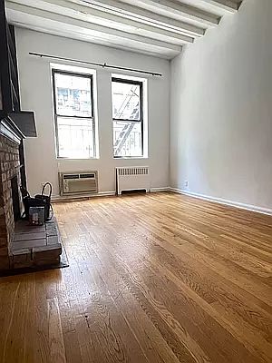 EXACT PICTURES. Beautiful apartment! Just one flight up in a walk up building. HUGE living room with SOARING 11 FOOT EXPOSED BEAM CEILINGS and exposed brick with faux fireplace detail. Can fit living room set, dining table and work space. Pristine Hardwood floors and two big oversized windows let the sun shine in (south facing)! The apartment has a separate windowed kitchen. There are windows in every room. Bedroom fits a queen bed and small dresser and it has a double width closet, one of three in the apartment. In wall air-conditioner. Heat and hot water included and just one flight up in a walk up building. Drop off wash and fold in retail space next door. Located in Prime Gramercy just off of Third avenue and Just one block from Gramercy Park and 2 blocks to the 6 train. This is one of the safest blocks in the city as it is close to the police academy. Great neighborhoodIrving Place and all its cafes, restaurants, are just a few minutes from your front door. Continue strolling thru Irving Place and stop at Trader Joe's or Union Square and Whole Foods and great shopping also a super market 1 block away. Excellent management company and live in super. THIS IS THE ONE!