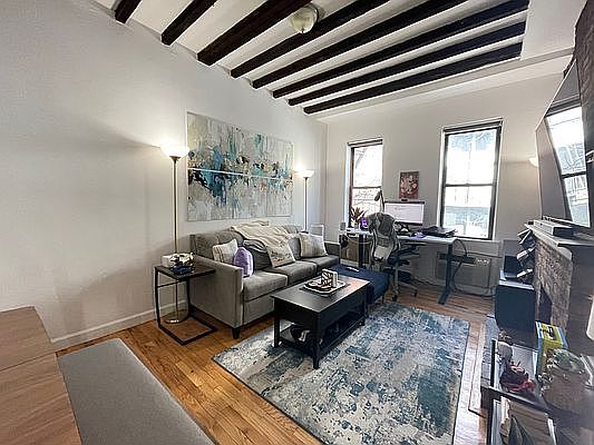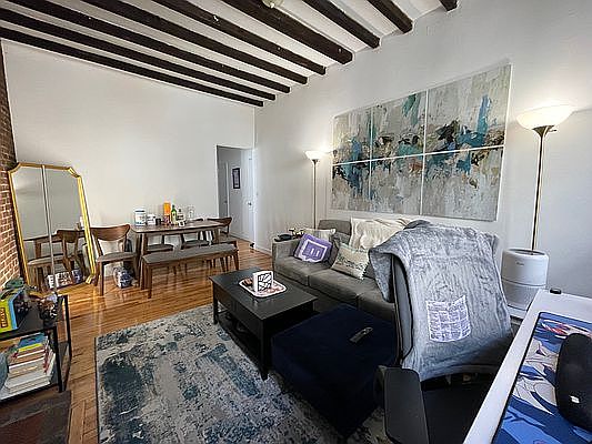 These are the REAL PICTURES. Beautiful apartment! Three flights up in walk up building with LAUNDRY. HUGE living room with SOARING 12 FOOT EXPOSED BEAM CEILINGS and exposed brick with faux fireplace detail. Pristine Hardwood floors and two big over-sized windows let the sunshine in! The apartment has a separate windowed kitchen. There are windows in every room. Bedroom would fit queen bed and dresser and it has a double width closet, one of three closets in the apartment. Super on site and excellent management company. Heat and hot water included. Located in Prime Gramercy just off of Third avenue and Just one block from Gramercy Park and 2 blocks to the 6 train. This is one of the safest blocks in the city as it is close to the police academy. Best neighborhoodIrving Place and all its cafes, restaurants, are just a few minutes from your front door. Continue strolling thru Irving Place and stop at Trader Joe's or Union Square and Whole Foods and great shopping also a supermarket 1 block away. Excellent management company and live in super. This is a below market price for this amazing pad in this highly sought after neighborhood! If this is your budgetTHIS IS THE ONE!
