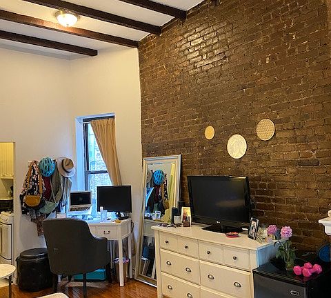 EXACT PIX! RARE AVAILABILITY! This is a below market rate for this PRIME GRAMERCY studio. HUGE LOFTY STUDIO WITH 14 FOOT HIGH BEAMED CEILINGS! Will fit QUEEN BED and a sofa-entire living room set. 2 Big deep closets. Separate galley kitchen black granite countertops, ceramic floors and lots of modern white cabinets. New windowed full tiled bath. IN WALL AIR CONDITIONER ALREADY INSTALLED. Exposed brick wall with faux fireplace. There is one WASHER AND DRYER IN THE BUILDING and a drop off laundry in the retail space of the building. SUPER on site. Heat & Hot water included! Located in Prime Gramercy just off of Third avenue and Just one block from Gramercy Park and 2 blocks to the 6 train. This is one of the safest blocks in the city as it is close to the police academy. Best neighborhoodIrving Place and all its cafes, restaurants, are just a few minutes from your front door. continue strolling thru Irving Place and stop at Trader Joe's or Union Square and Whole Foods and great shopping also a super market 1 block away. Excellent management company and live in super. Below market price for this amazing pad in this highly sought after neighborhood! If this is your budgetTHIS IS THE ONE!