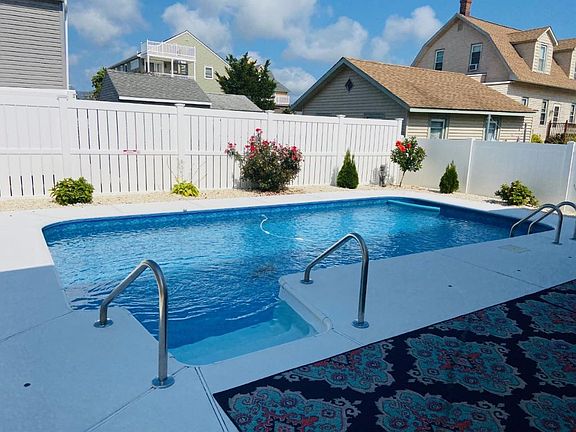 Completely renovated 3 stories single-family home on 50x100 lot located on the desirable East side of North Wildwood. Walk to the beach from this 4 bedrooms 4 1/2 bath beauty. The en-suite bedroom on the first floor has a private entrance to the spacious deck overlooking the heated inground pool. The pool house has Bedroom a full bath and a full kitchen that's perfect for outdoor entertaining. The Kitchen in the main house has granite countertops, tile backsplash, and stainless steel appliances. The second floor of the home has two additional en-suite bedrooms and a laundry room. The third floor has a fourth en-suite with plenty of closet/storage space. Crown molding, Hardwood floors, ceiling fans, tile bathroom floors throughout. A 5 car driveway allows for ample parking. This home is a must-see. Showings are by appointment only. Buyers must present preapproval prior to showings.