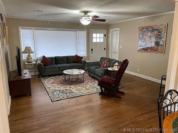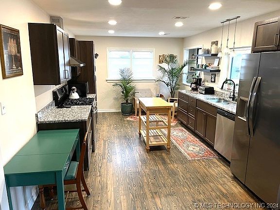 Must see this attractive blue bungalow in person... covered front porch- backyard deck... beautifully updated only one year ago, while maintaining that 50/s charm. Refinished hardwood floors - granite counters, new cabinets, new appliances in the kitchen - all appliances are included. New carpet in upstairs loft. Close to Riverside Drive (3 blocks), Brookside, The Gathering Place, and transportation. Listing agent is related to seller.