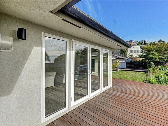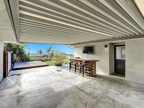 Updated 3 bedroom, 2 bath single level ocean view home in fantastic location close to downtown Del Mar. Privately located on a cul-de-sac, this home was remodeled with large kitchen including stainless steel appliances, cabinets, counter tops, newer bathrooms, newer flooring, and new paint. Sit down ocean views from the living spaces, secondary bedrooms and ocean view entertaining space with covered outdoor patio.
