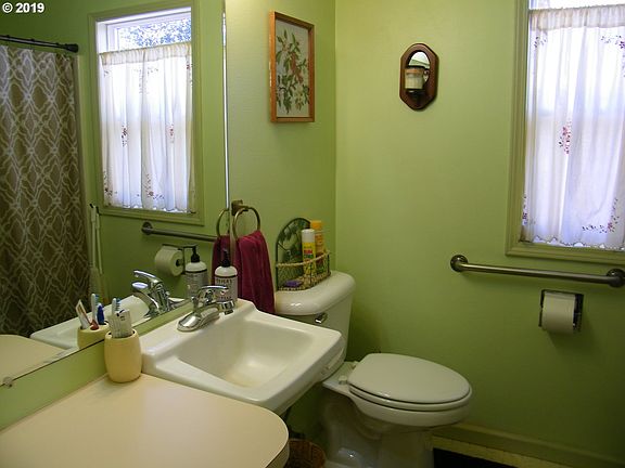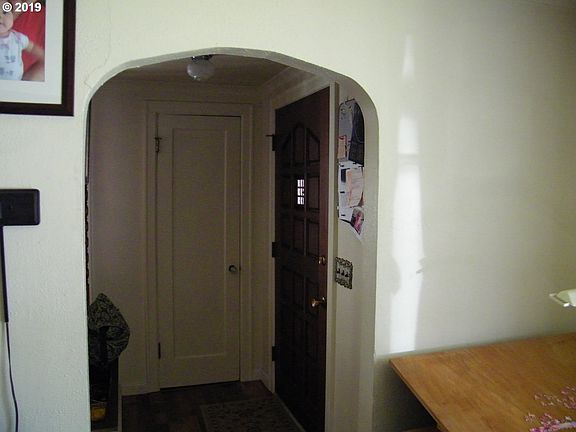 Vintage charmer with built-ins, cabinets, bookshelves, niches, closets, gas insert fireplace, tile hearth, tile kitchen countertops, new laminate flooring, sliding doors to covered back porch, alley access to detached garage, attached tool shed, fenced. Well insulated home. Gas range cost $1,200 new, has convection, self cleaning features, 1 yr old. Refrigerator, washer and dryer also included. Concrete wheelchair ramp to front door.