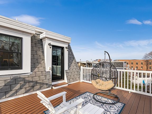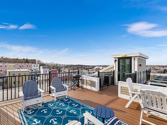 Imagine basking in the luxury of a penthouse condo lifestyle. This residence is a haven finished in 2019 within a boutique 7-unit complex. Step inside the spacious 3-bedroom unit w/ two private decks, each catering to a distinct mood. Entertain guests on the expansive deck directly off the living room, or escape to the private rooftop deck for breathtaking views. Modern conveniences abound, with high-end appliances, central air conditioning and heating, and a tankless hot water heater. Cozy up by the fireplace on chilly evenings, and appreciate the elegance of the condo's design, accentuated by granite countertops with a stunning waterfall edge. A dedicated garage parking space keeps your car secure, while a private storage unit in the basement offers additional space for your belongings. And when you crave fresh air or social interaction, a common outdoor area provides a perfect spot to connect with your neighbors! Plus, .6 miles to Airport T station for an easy commute to downtown.