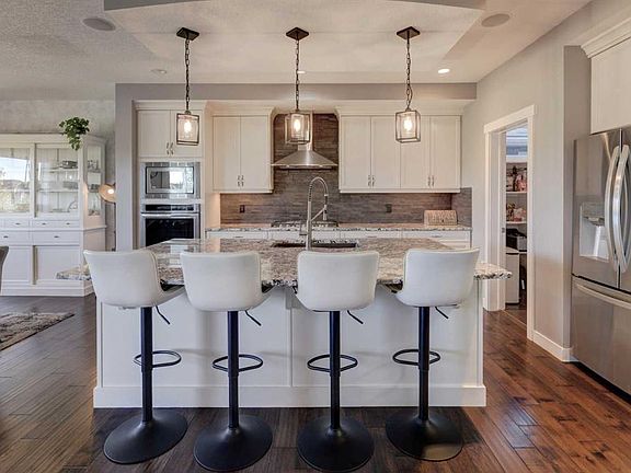 This beautifully finished, fully developed custom-built Shane Homes has something for everyone. As you enter, you’ll be greeted by soaring ceilings and rich hardwood flooring throughout the main floor. To the left, a spacious office with elegant French doors offers a perfect work-from-home setup. There is a 1/2 bath and wide entryway from the double attached garage to the right. The living room, complete with a stunning gas FIREPLACE, is ideal for relaxing after a long day or entertaining guests. The kitchen is a chef’s dream—featuring upgraded cabinetry, bright walk through pantry, GRANITE countertops, a gas countertop stove, built-in oven and microwave, and a massive central island. Just off the kitchen, step onto the serene, West facing back deck where you can take in beautifully landscaped views of the backyard, WALKING PATHS, and a peaceful POND with a fountain. There are gas BBQ hookups (lower patio as well) and stairs leading directly to the yard and path system. Upstairs, you'll find three generous secondary bedrooms, two built-in desk spaces perfect for students or workstations, and a cozy family room—ideal for movie nights or casual gatherings. The spacious primary suite is a private retreat, offering panoramic views, a luxurious 5-piece ensuite with a soaker tub, standalone shower, and a huge walk-in closet. A well-appointed laundry room and full 4-piece bathroom complete the upper level. The lower level includes a full kitchenette with an electric cooktop, refrigerator, dishwasher, and its own washer/dryer. The basement also has a large bedroom, 3-piece bathroom, a comfortable living area, and private access via sliding doors leading to a covered patio and the backyard. All of this, Hunter Douglas blinds, central vacuum, 3 zone heat and central AC, easy access to Highway 2/Calgary and more. This exceptional property truly has it all—space, style, location, and functionality.
