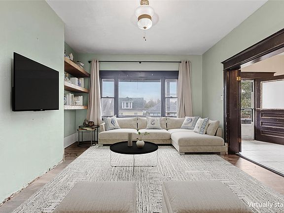 This spacious single family home in Carrick has so much potential! From the quaint covered front porch, the foyer leads to the family room with floating selves and a huge window. It flows into the dining room with a modern light fixture; both these rooms have new flooring. The kitchen is waiting to be turned into a chef's paradise by combining two areas into one large kitchen. Off the kitchen is a door that leads to the side patio and backyard. A completely updated full bath rounds out this level. On the 2nd level, you'll find 2 spacious bedrooms, one with new flooring and a decorative mantled fireplace, and a full hall bath. You'll find 2 more bedrooms on the 3rd floor. The unfinished basement is ready to be finished into additional living space. An off street parking pad for 2 cars makes parking easy. Close to supermarkets, public transit, farmers markets and so much more! With a new roof, new central AC, new furnace, and most of the electrical work redone, it's off to a great start!