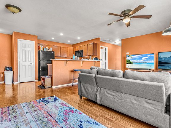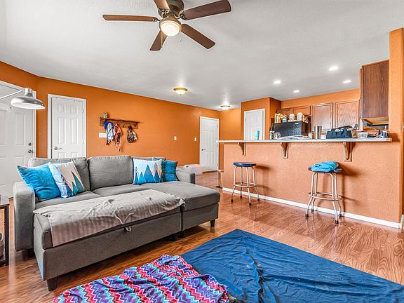 This open-concept home features wood laminate flooring throughout the main living space where an eat-at kitchen counter, dining room, and spacious living room provide a great area for gathering. The master suite has its own private entrance to the backyard along with a walk-in closet and en-suite with walk-in shower. Two additional bedrooms and an attached garage provide all the space and functionality one needs. Privacy vinyl fencing encloses the homes large backyard which provides an outdoor patio space. Current month to month tenant in place and home requires 24 hour notice to show.