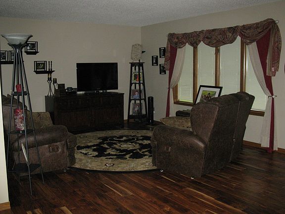 Nice updated home with open floor plan in quiet Hesston neighborhood. Beautiful hand scraped hardwood floors in huge living room, dining room and updated kitchen. MF laundry. Basement is finished with huge family/rec room, 2 bedrooms and just recently remodeled bathroom. There is a huge fenced backyard w/ sprinkler system. Call for your private showing.