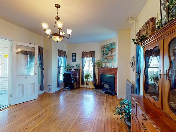 EXCEPTIONAL HOME! This beautiful home features hardwood floors, newly remodeled bathroom, large modern kitchen with island and dining area, formal dining room w/ fireplace, over sized living room & den/office space that could be a 5th bedroom! Upstairs offers 4 bedrooms and a full bath with a clawfoot tub and full shower. Enclosed porch w/ stain glass windows, wrap around deck with a NEW hot tub, garage w/ workshop area & storage. Partially finished basement, furnace just 3 years old, new thermo pane windows! Outstanding in-ground pool w/ newer liner and gas lines ran for heating system.