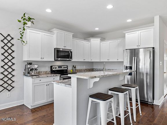 Welcome Home! Beautiful 3 bedroom 3 bath home in the charming Coldwater Creek neighborhood! Ground floor features beautiful hardwood floors, cozy living room with fireplace and charming accent trim wall, large laundry room, and bonus office/flex use space! Open Kitchen with granite countertops, stainless steel appliances, island and tons of pantry space. First floor primary bedroom!! Head upstairs to find 2 additional bedrooms and a large bathroom. Home has a large fenced back yard and is a great space for entertaining! Coldwater Creek is just a short drive to Emerald Isle beaches, local shops, restaurants and more! Close proximity to local bases. This is a true must-see!