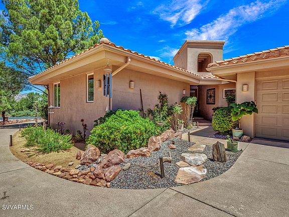 PRICED TO SELL- Seller says, ''Make an Offer!'' Welcome to a Sedona gem where the ''backyard'' is in the front! Enjoy sunrise coffee or sunset BBQs on your patio with stunning Cockscomb Red Rock views. This 2,714 sq ft single-level home in gated Foothills South sits on a beautifully landscaped .47-acre lot with serious curb appeal. Inside, you'll find 3 spacious bedrooms, 2.5 baths, formal dining with a view, and a bright, open layout framed by massive windows. The custom concrete fireplace sets the mood, while the spa-like primary bath features a jacuzzi tub, dual sinks, and a separate shower. There's even a dedicated dog run for your four-legged friend. Located minutes from hiking trails, groceries, medical, and dining: this is Sedona living reimagined! A must see in person ! bring Sedona's natural artistry indoors.