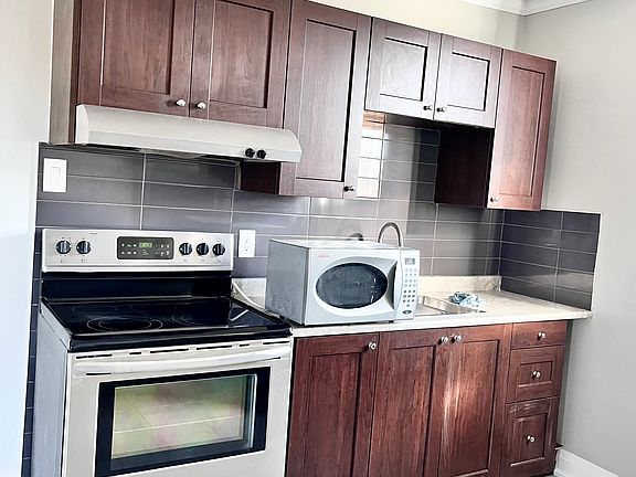 Newly renovated apartment, 2nd floor unit with outdoor deck space, new kitchen, appliances, new floors throughout, plenty of natural sunlight and lots of storage space! New tiles in bathroom and kitchen. Washer & Dryer in unit Big park down the street, restaurants close by, Public & Catholic Schools within walking distance. Renter is responsible for Hydro. No smoking inside unit.