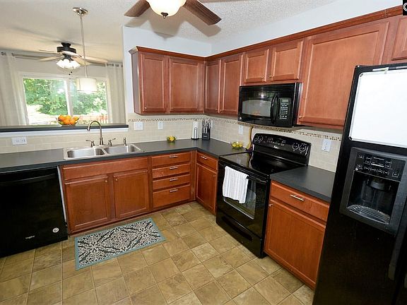- RoomKitchenFeatures: Ceiling Fan(s), Counter Tops-Formica, Floors-Vinyl, Cabinets-Stained, Backsplash-Tiled