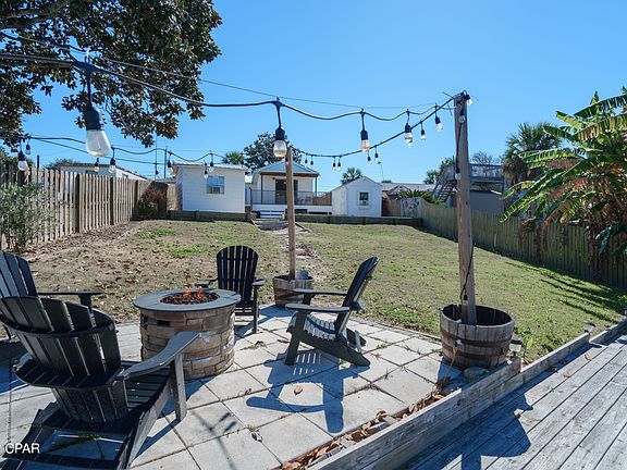 'CURRENTLY UNDER CONTRACT, SELLER WILL CONSIDER BACKUP OFFERS' Perfect Beach Cottage. Fresh New Look. You will Love the location Lake boarding your property and a short walk to the Gulf of Mexico. Close to 30 A, Pier Park, shopping, restaurants. Beautiful decor throughout highlights 2 bedrooms, both with French doors to wrap around decking. 1.5 baths. Fully furnish for a Great 2nd Home or Vacation Rental. Fire Pit (propane tank) by Lake. Charming out Buildings. One for your Laundry and another very large storage building for all your lawn chairs and floaters for the ocean etc. Wonderful tankless water heater 2022, Great metal roof 2019, New Siding 2020, HVAC and Water Heater 2019. Over 300 Days of Sunshine in Panama City Beach. Time to Head for the White Sugar Sand and the Crystal-Cl