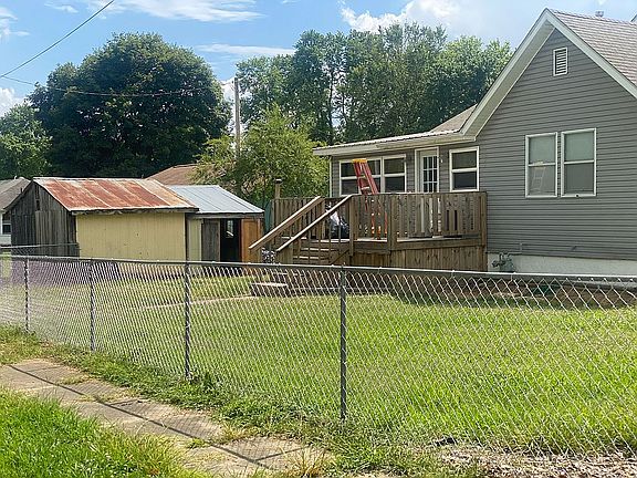2 bedroom, 1 bath house with a fenced in yard, deck, and an unfinished shed on the corner with 2 city lots. House has a full unfinished/bare basement with a entrance to the basement from outside, and an attic that could easily be converted into a 3rd bedroom. Master Bedroom did at one time have a 1/2 bath that was converted into a walk-in closet, but could easily be put back to a 1/2 bath. New vinyl plank flooring in the side room and kitchen, sale will come with ceramic tile that can be used for bathroom floor remodel, hardwood floors through the rest of the house, living room, dining room, 2 bedrooms, and hall way. House will come with wired security cameras and box that is currently located in Master Bedroom. It is currently wired for Satellite TV, but may need to be upgraded. Great starter home or rental home.