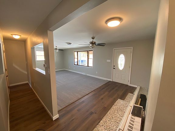 3 bed 1 bath. .6 acres of land. No neighbors in site. All freshly remodeled. New floors, new paint, and new trim throughout! New countertops in kitchen! All newer stainless steel appliances. New toilet and vanity in bathroom. New washer and dryer. 2 car garage however only one side will be available. New roof. New big beautiful front porch. House does not have central AC however there are two brand new window AC units there. Propane heat. Unfinished walkout basement. Great for storage! 10 min from Walmart shopping plaza! $1,550 monthly + utilities. Bathroom photo shows hole in the wall above vanity but mirror has been hung since then, just don't have an updated photo as of now. Absolutely no smoking inside the property. 6 month lease. With potential to extend.