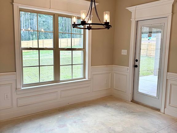 Welcome to the Bobo Plan, a beautifully designed brick-and-stone home featuring 4 bedrooms and 2 baths. The open floor plan highlights a spacious living area with coffered ceiling and an electric fireplace with stone surround, perfect for gathering. The kitchen is a chef's dream with granite countertops, tile backsplash, under-cabinet lighting, and a walk-in pantry with additional cabinetry and lighting. The owner's suite offers a relaxing retreat with double trey ceilings, a luxurious bath including a tile shower and garden tub ,plus a large walk-in closet with direct access to the laundry room for added convenience. Three secondary bedrooms share a well-appointed hall bath with double sinks. Enjoy outdoor living on the covered game day patio overlooking a large backyard, complete with privacy fence and wooded views.This home blends thoughtful design with comfort and style—ready to welcome its new owner.