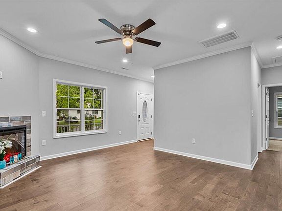 Beautiful Nearly-New Home Loaded with Upgrades Don't miss this stunning home, less than 2 years old, featuring 9-foot ceilings with elegant crown molding throughout. The kitchen boasts granite countertops, a stylish tile backsplash, self-closing cabinets, and stainless steel appliances. Tile flooring enhances all wet areas, while engineered hardwood floors grace the main living space. Cozy carpet adds comfort to each bedroom, all of which include ceiling fans and thoughtful touches throughout. You'll love the custom feel of this home—from the inviting electric fireplace for winter nights to the charming covered porch perfect for warm summer afternoons. With its modern finishes and carefully curated details, this home is truly move-in ready. Surrounded by mature trees and built for comfort and style, this property is a must-see. Don't wait—homes like this don't last long!