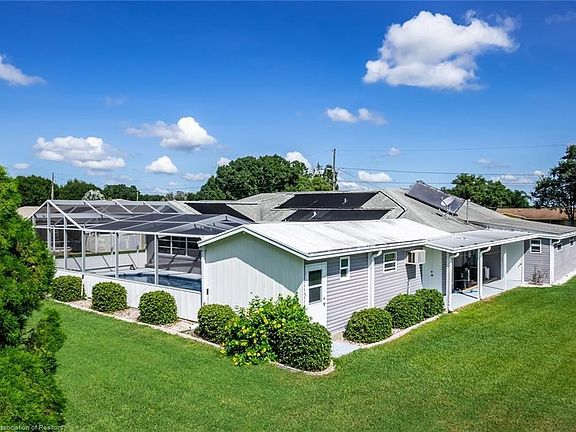 Located on the 13th fairway of River Greens Golf Course, this 3 bedroom plus office, pool home is perfect for your Florida residence! This home features a spacious great room and dining area with cathedral ceiling, bright kitchen with newer refrigerator, breakfast bar and pantry, owner's suite on one side of the home and two more bedrooms and a bath on the other; plus a 12x20 air conditioned Florida Room/office, giving you plenty of room for you and your family or guests. In addition, there's a (15x35) solar heated pool with it's own storage room, to enjoy on the warmer days, and a 6 man hot tub for the cooler evenings. The beautiful golf course is in the backyard, plus there's a 2-car garage & separate (12x27) golf cart garage. And for the times when you just want to tinker or pursue your hobbies, you are certain to enjoy the huge workshop with electric in back. Need I say more... Don't delay. This home will not be listed long.