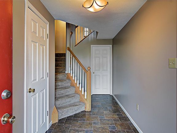 Luxurious brick front townhome in the desirable community of Seven Fields! Fabulous floor plan with an inviting ceramic tile entry. Gorgeous new luxury vinyl plank flooring on the main floor. The spacious living room boasts of a fireplace. A sun-drenched eat in kitchen is fully equipped with newer kitchen cabinets ('23), granite countertops, dishwasher('22)microwave oven('22), gas stove('22), refrigerator, and sink. A beautiful breakfast bay offers picturesque views. A half bath completes the fabulous main level. The upper level features a spacious master suite with lush en suite full bath with double bowl deluxe vanity. A 2nd generous sized bedroom is offered on the upper level with a full bathroom. Relax on the large private deck backing to trees! An oversized garage and driveway plus extra parking directly across the street. Community Pool. Close to shopping & restaurants. Easy access to I79 and 20 min to Pittsburgh. Hurry, this one won't last!
